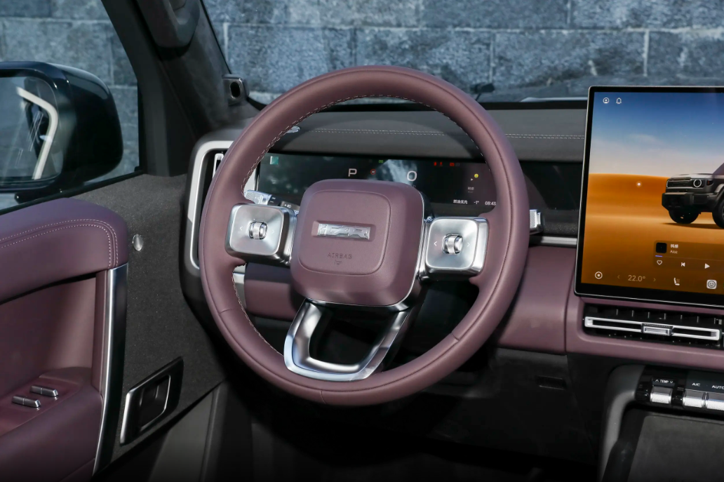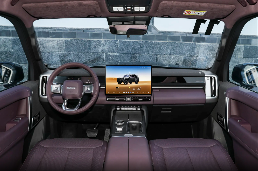 通过性同样出色:接近角/离去角24.5°,离地间隙220mm,涉水深度600mm,还带蠕行模式。作为承载式增程 SUV,它成功穿越塔克拉玛干N39线,泛越野能力在同级还是挺不错的。