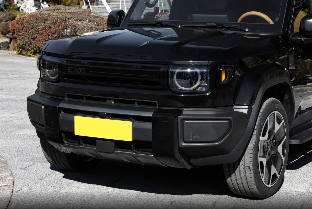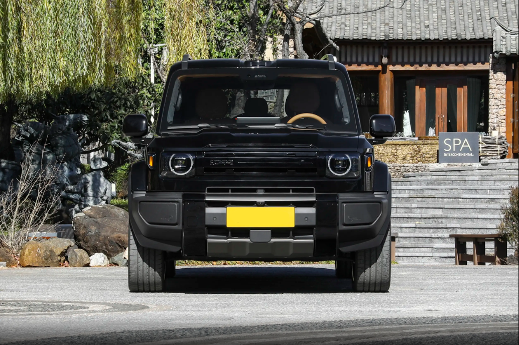 外观设计上,iCAR V27把经典方盒子的精髓玩明白了。整车线条笔直硬朗,没有多余的曲线,5米多的车长搭配短前后悬、四轮四角布局,站在那就有股“小路虎卫士”的气场,比市面上那些圆乎乎的城市SUV霸气太多。前脸是外方内圆的大灯,环形LED日行灯一亮,辨识度拉满。宽厚的熏黑前包围、隆起的引擎盖筋线,越野感直接拉满。