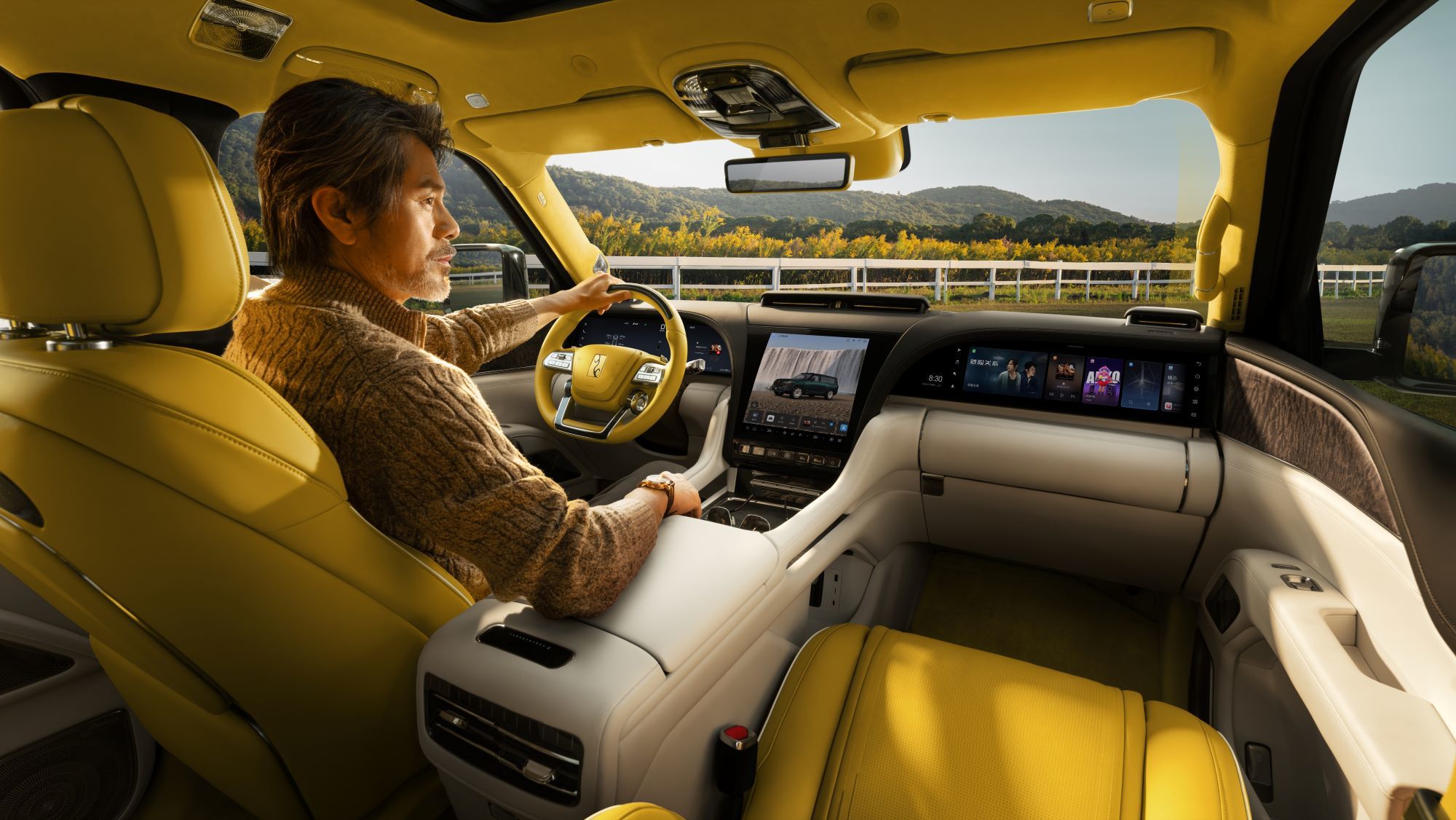 座舱内部,新车新增“鸣沙金”内饰配色,黄白拼色设计灵感源自敦煌鸣沙山与月牙泉的日出景致。座椅采用山纹刺绣工艺,以祁连山脉轮廓为原型,融入书法笔墨意境,搭配前部飞流瀑布曲面屏,营造出兼具开阔感与文化底蕴的座舱氛围。