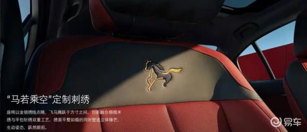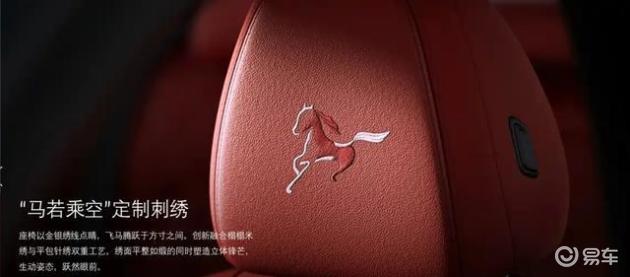国产车型首次引入个性化定制磨砂宝石青车漆,搭配熏黑设计轮圈。车内设计有专属迎宾踏板,Designworks上海设计团队设计前排座椅马年专属刺绣标识,采用平包针绣与榻榻米刺绣工艺。