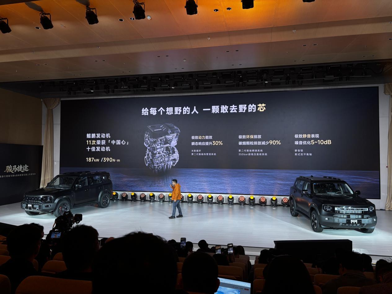 旅行者骏马版:定位更“野”。搭载鲲鹏2.0TGDI发动机(187kW/390N·m),拥有28°接近角、30°离去角及700mm涉水深度,车身扭转刚度高达31000N·m/deg,更适合需要高强度穿越的用户 。