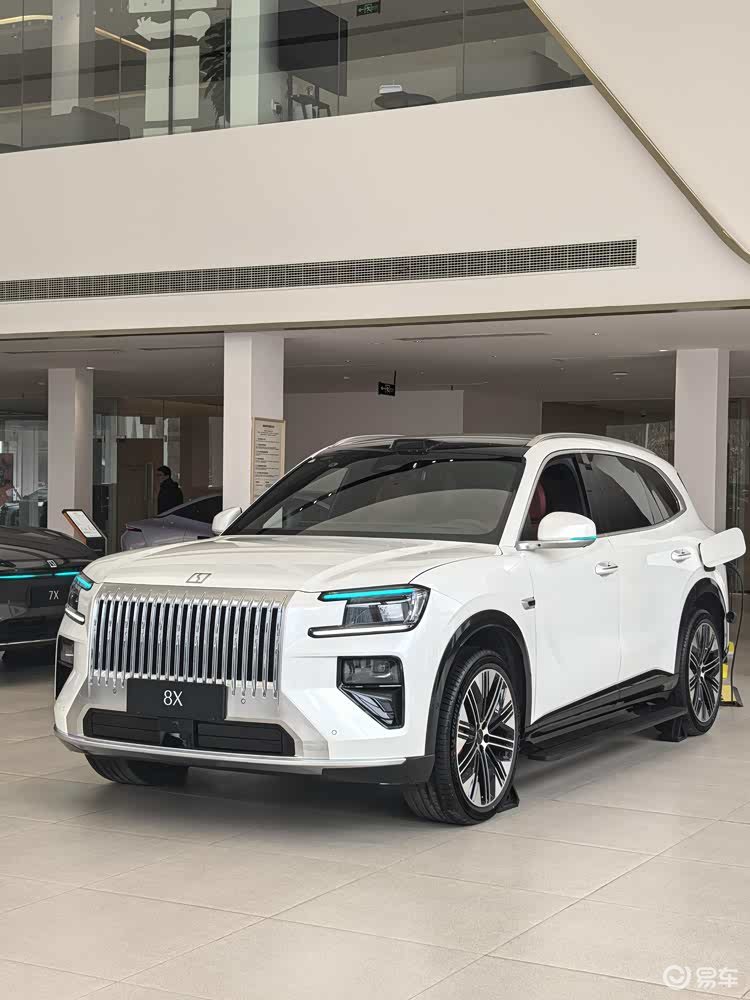 外观方面,看到实车的第一感觉就是——大!而且很有派头。它延续了极氪9X那套家族设计语言,前脸是一大片直瀑式的镀铬中网,一直延伸到保险杠下方,配合镀铬的前唇,豪华感确实拉满了。
