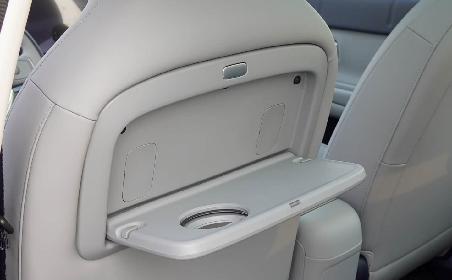 零跑A10的实用小心思还不止于此,其后排座椅坐垫还可以60度向上翻折,更方便放置花盆等较高物品,主驾侧座椅后方还设有一个很迷你的小桌板,小桌板上还有一个杯架,虽然这个迷你桌板只能临时放一下小件物品,但在同级中也是个聊胜于无的设计。